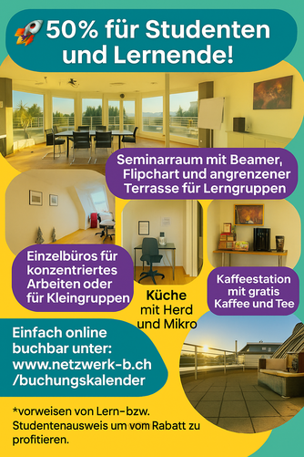 Einzelbüros für konzentriertes Lernen alleine oder in kleineren Gruppen bis 4 Personen.